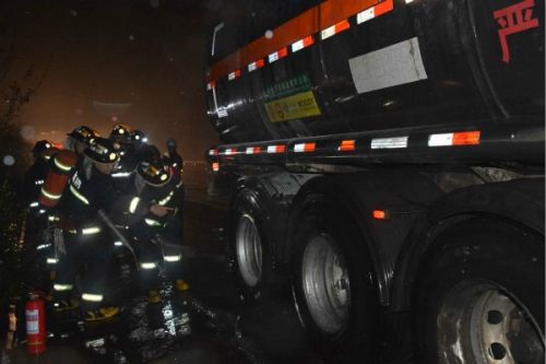 23时25分,大冶消防中队赶到事故现场,下陆中队经侦查后已开始对车辆底盘进行降温。经询问司机得知,他们是从广东开往武汉,车上装载的是28.88吨二甲苯,车后轮胎刹车片无法回位导致温度过高轮胎起火,他发现右后轮胎着火后立即停车利用车上干粉灭火器喷射轮胎起火位置,后又接水箱水扑灭了轮胎余火,现在底盘温度较高,消防官兵到达后他请求消防官兵对底盘与罐体进行降温处理。