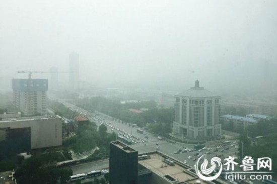 10日上午,济南市区能看到明显的雾蒙蒙一片