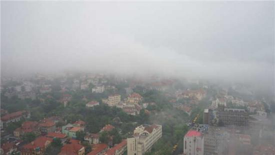 除了下雨,今天青岛还雾蒙蒙的。