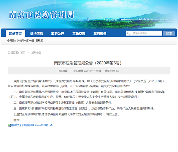 为进一步发挥协会在安全教育培训领域作用,协会于2020年12月取得危险物品安全培训资质。协会今后将持续开展相关培训工作,更好的服务会员单位,为危化品从业单位相关管理人员更快提升业务技能和安全素养提供学习平台,为平安南京做出贡献。